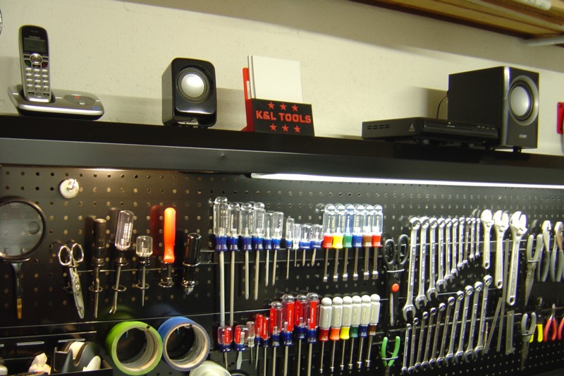 When it was all put together, I adhered a thin magnetic sheet to the bottom to keep it steady on top of the workbench riser. |