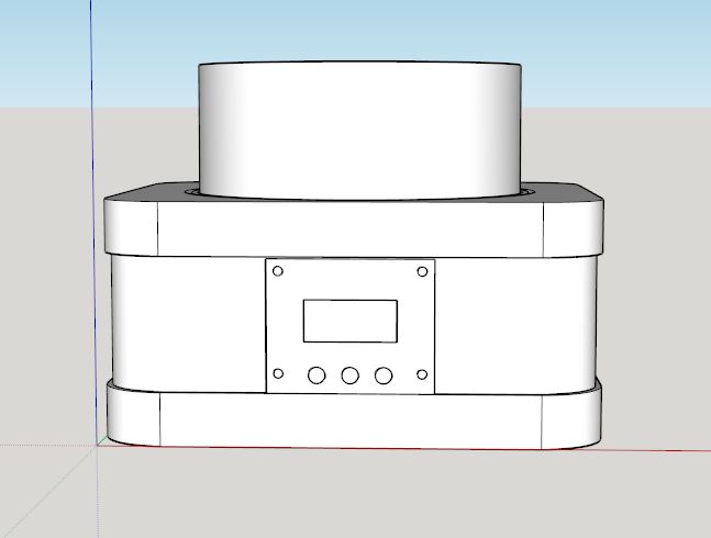 The goal was to be able to set the unit to vend dry cat food at several programmable times throughout the day. To allow this, there is an LCD on the front panel with 3 “soft switches”, i.e. switches whose functions are defined by software. These buttons take on the functions labeled above them on the bottom line of the display.
