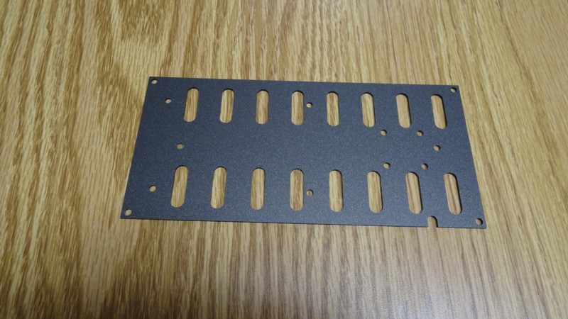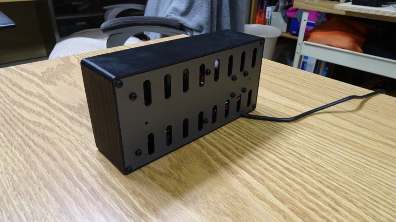 The rear panel for the enclosure was a good candidate for CNC. I had designed the circuitry to keep it simple and use parts I had on hand, knowing this would result in a little bit of internal heat. It was going to need some venting holes in the rear panel. The CNC did a nice job, milling (Photos 14 thru 16 & Video) the overall outline, the vent holes and even all my PCB mounting holes.
