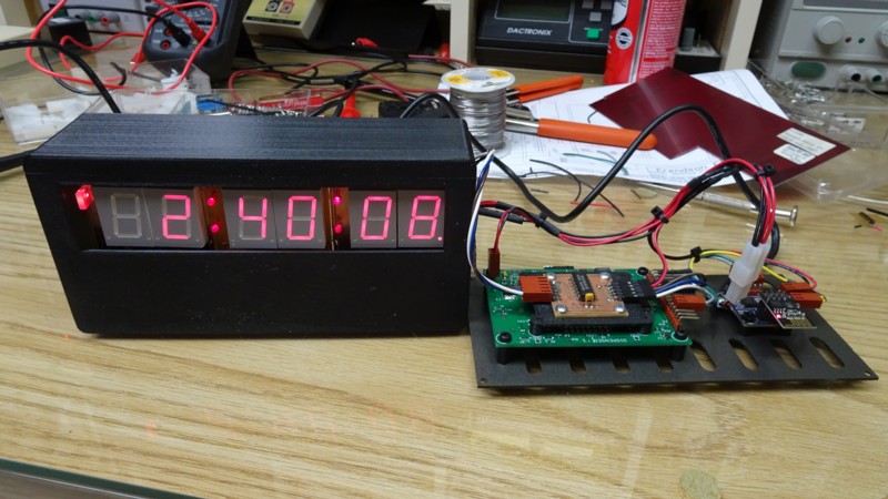 I decided to do a full development project to nail down the PCB milling process. This year so far (2017) I’ve already created the NetClock with LED Matrix display and a WiFi adapter for my Big Clock to set it’s time. So, now I think I’ll make a replacement for the WWV receiver clock we have in the bedroom. It will use 6 7-segment LED displays and of course go out over WiFi for NIST time. I’ll use only parts I have in-house.
