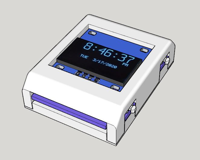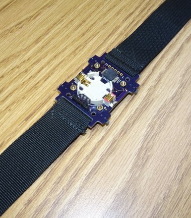 I put two slots in the PCB to attach a wristband. I knew I would be 3D printing the enclosure, but something this small would not be that strong. That’s why I had the PCB provide the physical strength necessary for the wristband. There were so many details to consider in wrapping an enclosure around the electronics that I had to recreate the PCB in 3D CAD along with the OLED board. Only by starting with those could I design an enclosure that took into account their shapes without having to make it larger than necessary. When I was done, Linda took some strap material from a camera case, put it through the PCB cutouts and sewed tight loops top and bottom. Then she sewed in velcro, making it relatively easy to take on and off. I don’t know how much I’ll actually wear it, but it was a great project. |