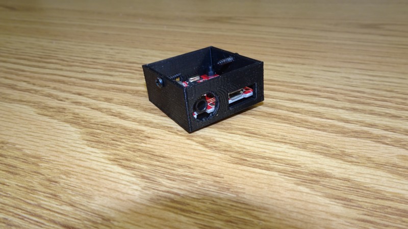 I’ve had this little Bluetooth receiver board sitting around for a long time. I finally hooked it up to the stereo and it sounded pretty decent. I designed a little enclosure for it with openings for the stereo mini phone and µUSB power connectors. I also put in a tiny hole for the blue LED indicator. While not audiophile quality, it does let me send any track I want from the network drive to the stereo via my phone without buying a new stereo. |