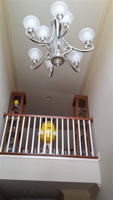 In our entry way we have a chandelier that is so high up, I would never climb a ladder that high, even if we had one. Not only that, but the bulbs are in decorative glass “cups” (for lack of a better word). The trouble is, the cups & light bulbs face UP!