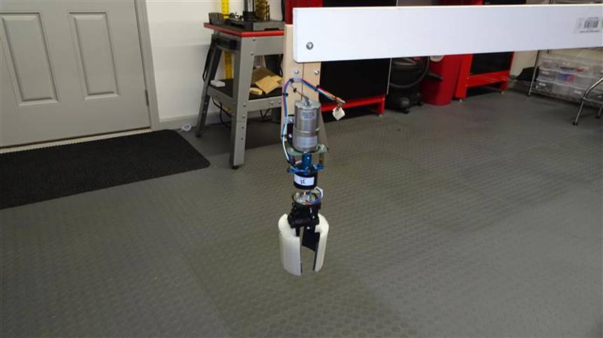 The servo on the gripper would need the standard PWM positioning signal. At first I was going to make that variable. But, picturing the actual operation, me standing there on the catwalk holding this 10ft long wood slat, teetering on the hand rail with a weight for counter balance, it sounds like I will be busy. So, I decided to have just 3 distinct gripper positions. “Grip” will be the strongest, meant to hold the bulb while it is rotating to screw the bulb in or out. “Hold” will be just strong enough to hold the bulb while it is being moved with the long slat to and from the chandelier. “Release” will position the grippers enough apart to place them over the bulb in the chandelier or to remove it once retrieved.