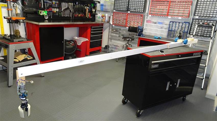 I wrote the software and finished the wiring. I then constructed the long 10’ wood slat that will be the arm that gets manipulated from the catwalk over the entryway. It will rest on the catwalk’s hand rail, and be somewhat counter balanced by putting a small hand weight (dumbbell) on the catwalk side. I’ll have to hold this assembly, position it over the target chandelier bulb, lower the grips over it and push the “Grip” button. Then, push the toggle switch in the “Screw-Out” direction. When it’s free, pull the whole thing back to the catwalk then do the reverse to install the new bulb. Really!?!