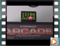 Check out the video of the clock mounted on the arcade game actually working. The red dots/pixels look much nicer in person.