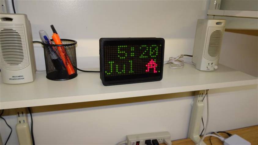 I always like to visualize what I want the final product to look like before I get in too deeply. The 32x16 dot matrix lends itself to having the Hours & Minutes on the top and the Month & Day on the bottom. I had always pictured putting this in our “diner” area as the only clock up there is a chrome analog clock with a neon surround. It’s really just a display piece and the clock stops when I turn off all the decorations, so it doesn’t really keep time.