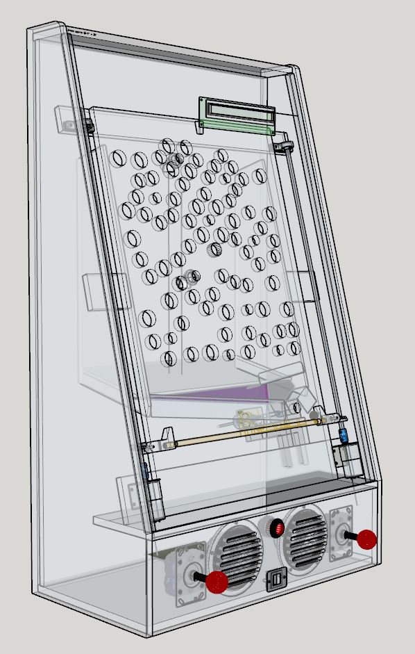 I watched videos of people playing it and decided this concept is exactly what I was looking for. It has massive player interaction like the best vintage video games. An actual ICB game is physically like a scaled back video arcade machine. Since it’s essentially a vertical game, unlike vintage video games like PacMan where the screen leans back at a severe angle, I thought I could design it more like a cross between an arcade game and a pachinko machine. Making it will require CNC work, woodworking, 3D printing, DC gear motors and stepper motors with controllers, electronics & PCB design, software, audio editing and as it turned out artwork manipulation. |
