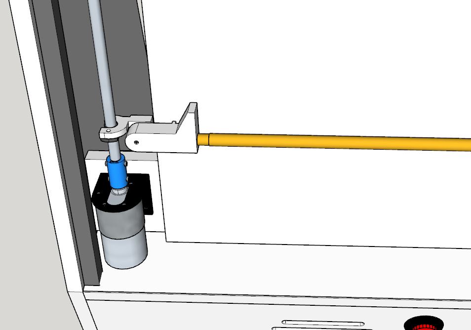 None of this suited me so I designed my game from scratch. I used DC gear motors facing up driving 8mm lead screws on each side. I created small elaborate 3D printed pieces which interface to delrin nuts on the lead screws and provide a pocket for a tiny bearing. The bearing allows easy rotational coupling to another 3D printed piece which is the interface to the bar and also creates the ball stop.