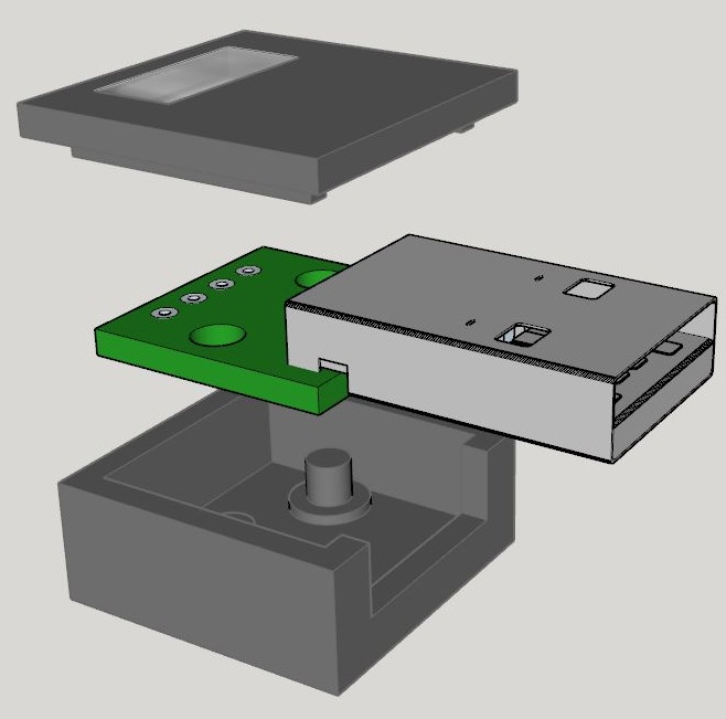 Then I started to design an tiny enclosure. It would have been easy to just use a through-hole LED and make a hole in the lid. But, having not done a dual-extruder 3DP project for some time, I though this would be my chance. The enclosure would use black plastic. But, in the “lid” design, I specified an area that would use “clear” filament. That way the top surface would print with both black and clear, making one solid surface with an area for light to escape. In reality, “clear” results in “translucent”, which is perfect for this project.