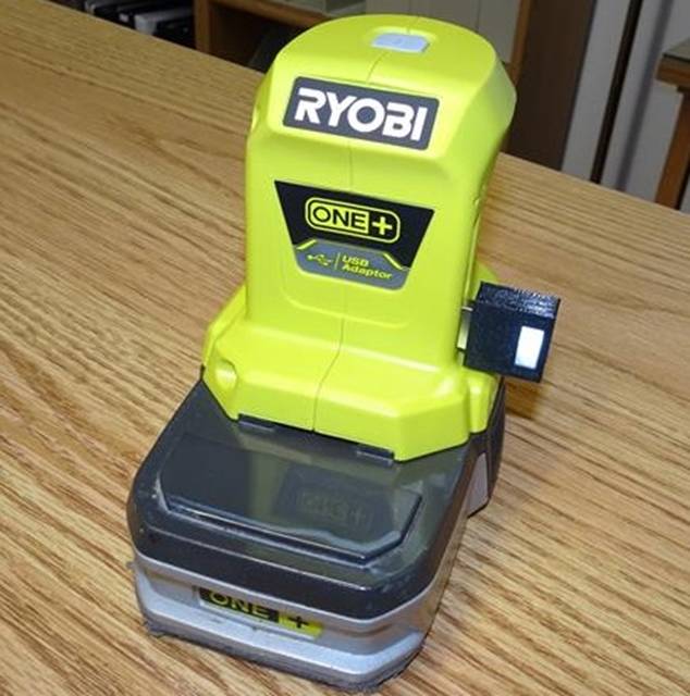 [2020-09] I recently bought a just released Ryobi accessory. It turns one of their tool batteries into 2 USB ports. I had actually designed almost the same thing back in 2015 (see page 4: “Ryobi Battery Adapter “). The only difference was my goal was to power an old Craftsman LED work light who’s internal battery had given out. The switching supply I made was set to 3V for that light. I could have just as easily made it 5V with a USB receptacle. In fact, I thought of it as I was finishing that project.