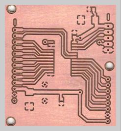 PCB I designed & CNC’d that converts I2C serial to parallel I/O to drive the alpha-numeric VFD. |