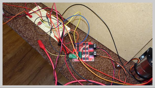 Quick mock up connecting the joysticks through simple logic to control the DC gear motors driver board. |