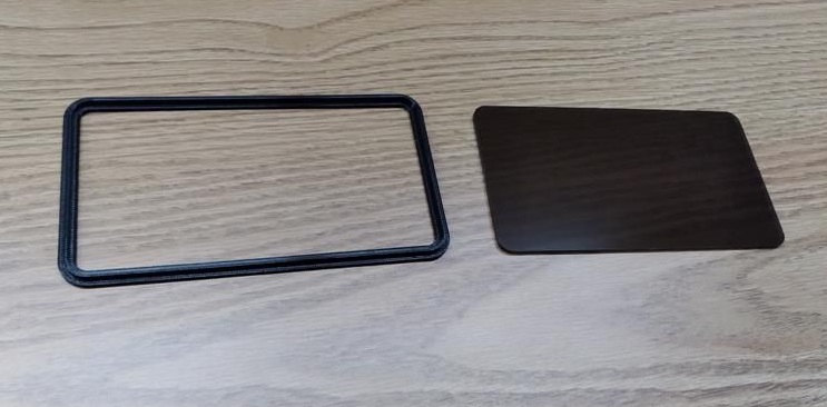3D printed bezel and CNC’d gray plexiglass front screen. |