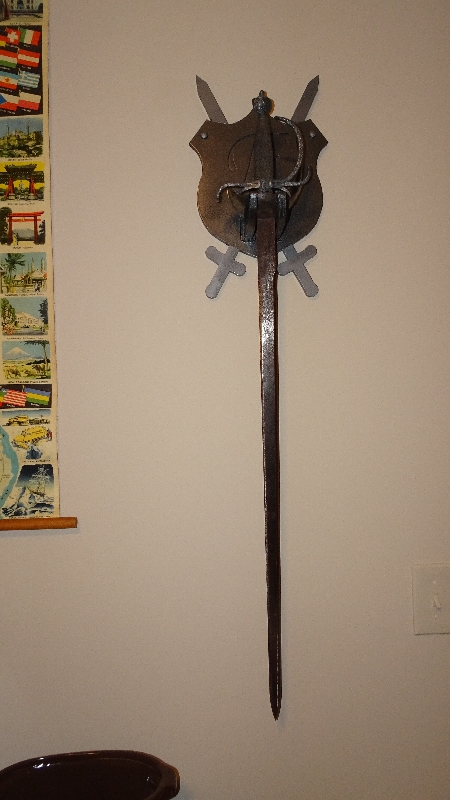 [2021-08-05] In the summer of 1969 my mother and I took a trip around the world. In Barcelona we went to Montjuic Castle. They not only had a large display of ancient weapons, they sold replicas. I bought this sword, and because we were only a little into our trip, we ended up taking it as carry-on for the rest of the way. Try to do that today.