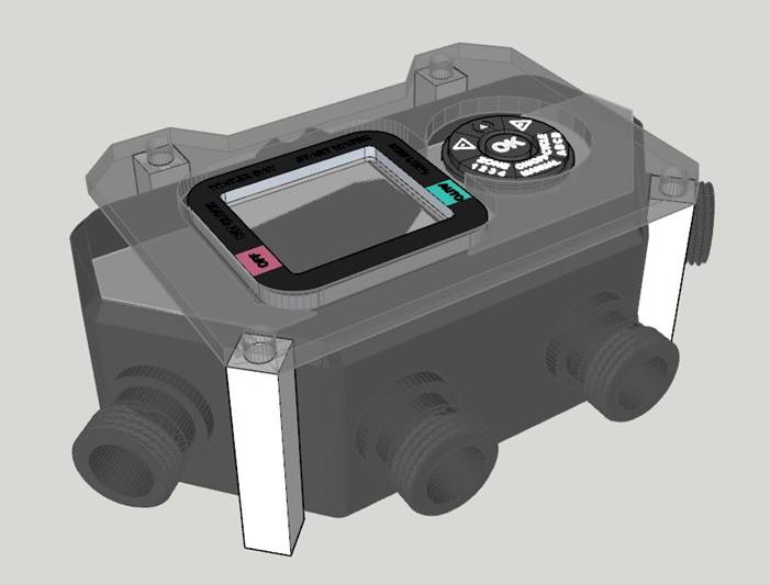 That’s what led me down this path to design a bracket to hold these oddly-shaped timers. In order to do that, I first had to 3D model the timer itself from scratch. Once that was done, I could design the plexiglass “faceplate” in place on the model. In addition, I made 4 standoffs which are .5” square and tapped them at each end.