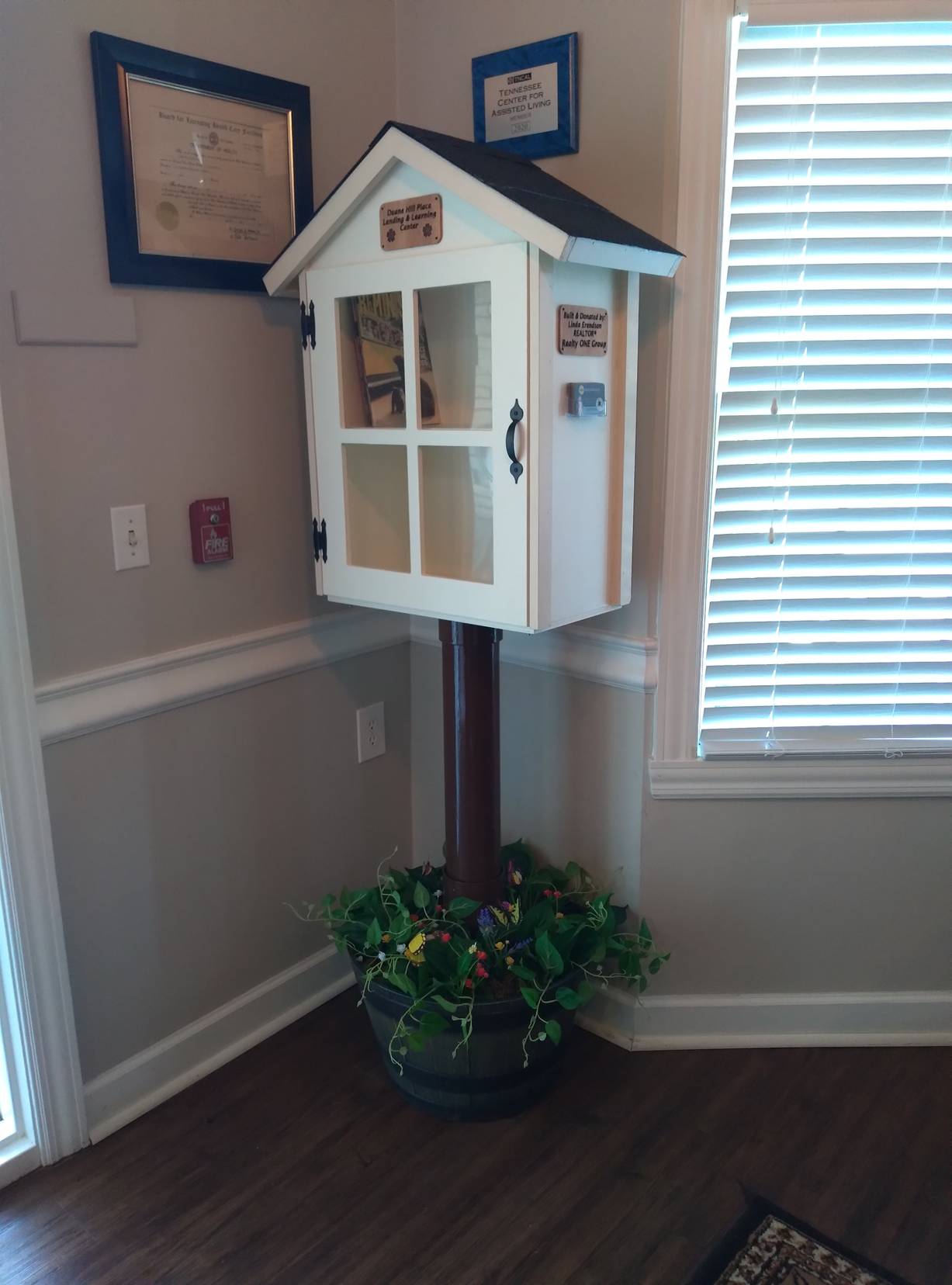 Photos below: 1 Outdoor library we put up in our little community. 2 The front laser engraved plaque for it. 3 The indoor library in it’s place. |