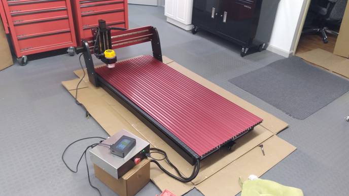 Above: Here the painted benchtop is on the cart with the CNC in place. I’m milling more pieces I need for the enclosure.