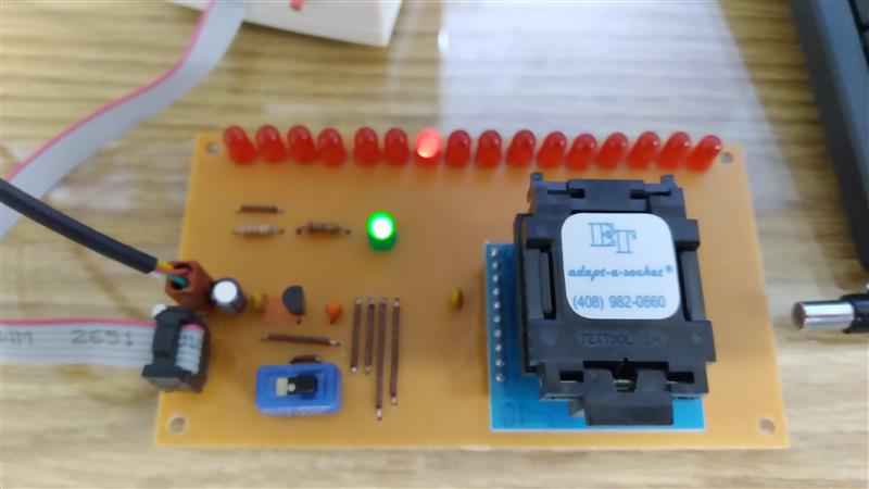 With this, I can program the DUT (Device Under Test) to just sequentially drive the LEDs using all of it’s 16 available I/O ports. This is really all the test it needs to be pretty sure the device is functioning.
