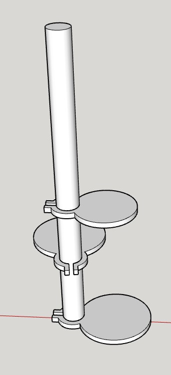 I happen to have a large solid aluminum rod in stock. I designed around it to match her wood Tiki Bar, including the diameter of the levels. I gave 2D models of the levels to my friend John who’s a metal master. He CNC’d the round aluminum plates. I drilled & tapped them for set screws and put it together. She didn’t seem to notice the difference!