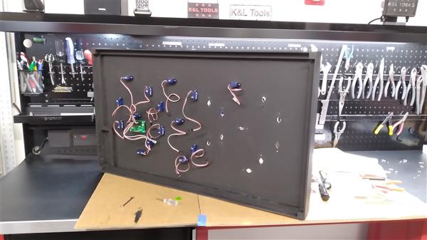 Here starting to attach the servo “horns” with the drilled wrenches on top. |