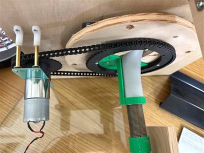 For the Time Tunnel game, I experimented with a completely different approach. I used a plastic roller chain, drilled out the pivot part of a link, then put a small #2 screw thru there with a tiny washer. I then 3DP little .75” “pegs” that I tapped for the screws and mounted them on the chain, perpendicular to the chain’s “side”. The pegs would go up a clear PVC tube, elevating a ball. See the CAD drawing and video of me bench testing the concept.
