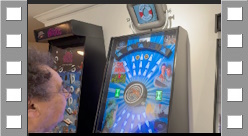 I made the centerpiece kind of a “turret” that rotates when the player pushes the left joystick Left & Right for CCW & CW. The turret has graphics showing Doug & Tony floating through time and a ball launcher tube that protrudes enough to aim with. When you think you’re lined up, tapping the right joystick up or down launches the ball.
