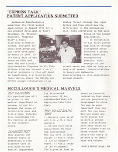 While I was working on this, Dictaphone did end up sourcing a small hard disk drive based dictation system from JVC. It was not expandable, but more importantly it still used our old analog dictate and transcribe stations. What I was working on would be expandable allowing up to 6 people to use the system at a time in any mix of dictation and transcription. But what really set it apart was that the A/D and D/A conversion was done in the stations and everything was sent digitally on a RS485 bus. Today, that seems obvious as everything is digital. But in the middle 80’s, it was a big step. This is what made my design the world’s first all-digital dictation system. During it’s product life I designed many additional peripheral devices such as telephone interfaces, handheld and handsfree dictate stations, etc. Also, I was always making provisions for ever increasing disk capacity. See .pdfs of the sales brochure and the in-house newsletter where they talk about my design. |