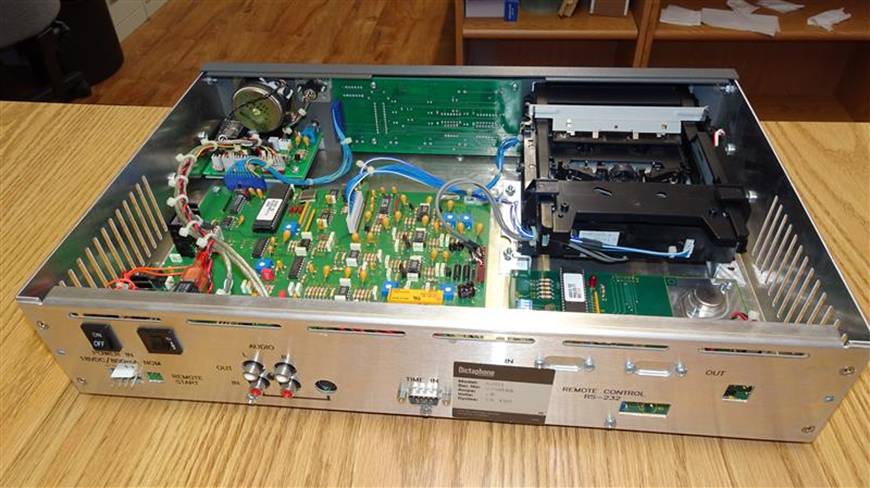 While there was a record output jack on every logger, Dictaphone wanted to offer a dedicated cassette recorder with many handy features. One of the features I put in was a speech synthesizer. Digital Time Code would come in from the logger during playback. The desired audio would be recorded on one of the cassette’s stereo channels, and a synthesized voice would speak the time on the other channel. That gave you a cassette that you could play on any consumer stereo player and have a built in time stamp.