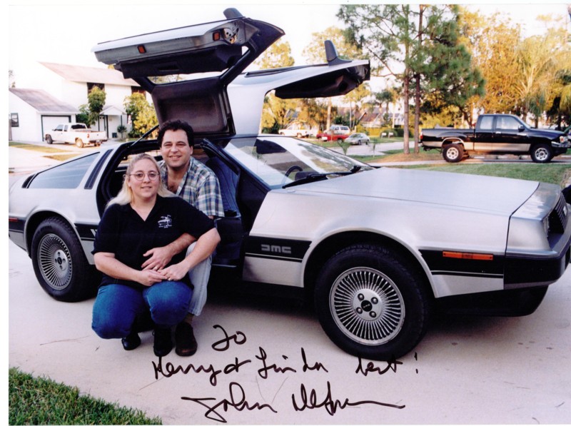 Text Box: In 1999 Linda called John DeLorean and asked if he would autograph photos of us in our car. He was very nice and agreed. She later totally surprised me with the framed 8x10's. Here is the one with both of us.