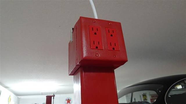 AC outlet box we made to sit at the top of one of the lift’s poles to give us power for the lift, chargers, etc. |